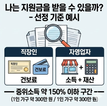 이번 지원금은 전 국민이 아닌 소득 기준 선별 지급 방식입니다.