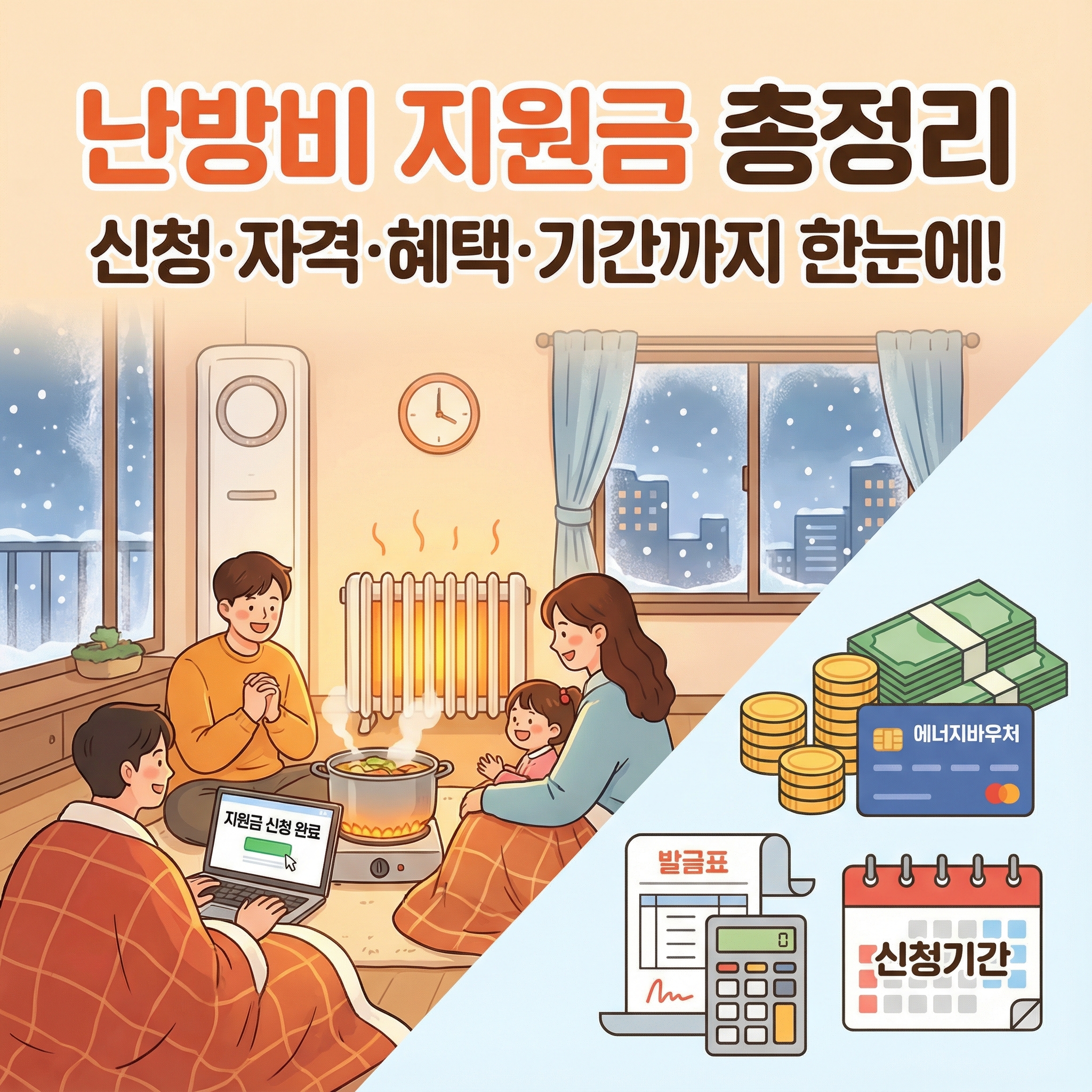 선선한 가을을 뒤로 하고 찾아오는 겨울은 오히려 성탄절이나 따뜻한 옷차림, 그리고 훈훈한 실내 온도 덕분에 따뜻하다는 느낌이 들지만, 사실 난방비는 누구나 걱정될 수 밖에 없습니다 .그런겨울철 난방비 부담을 덜어주기 위해 정부와 지방자치단체에서 다양한 난방비 지원금 정책은 운영하고 있습니다. 물론 이미 신청기간이 시작된지 꽤 되긴 했지만, 아직까지도 유효하기에, 미처 알지 못해 신청하지 못하셨던 분들에게도 기회가 있는데요. 이번 글에서는 신청 대상, 지원 금액, 신청 방법, 필요 서류, 자주 묻는 질문까지 한 번에 정리해드립니다.