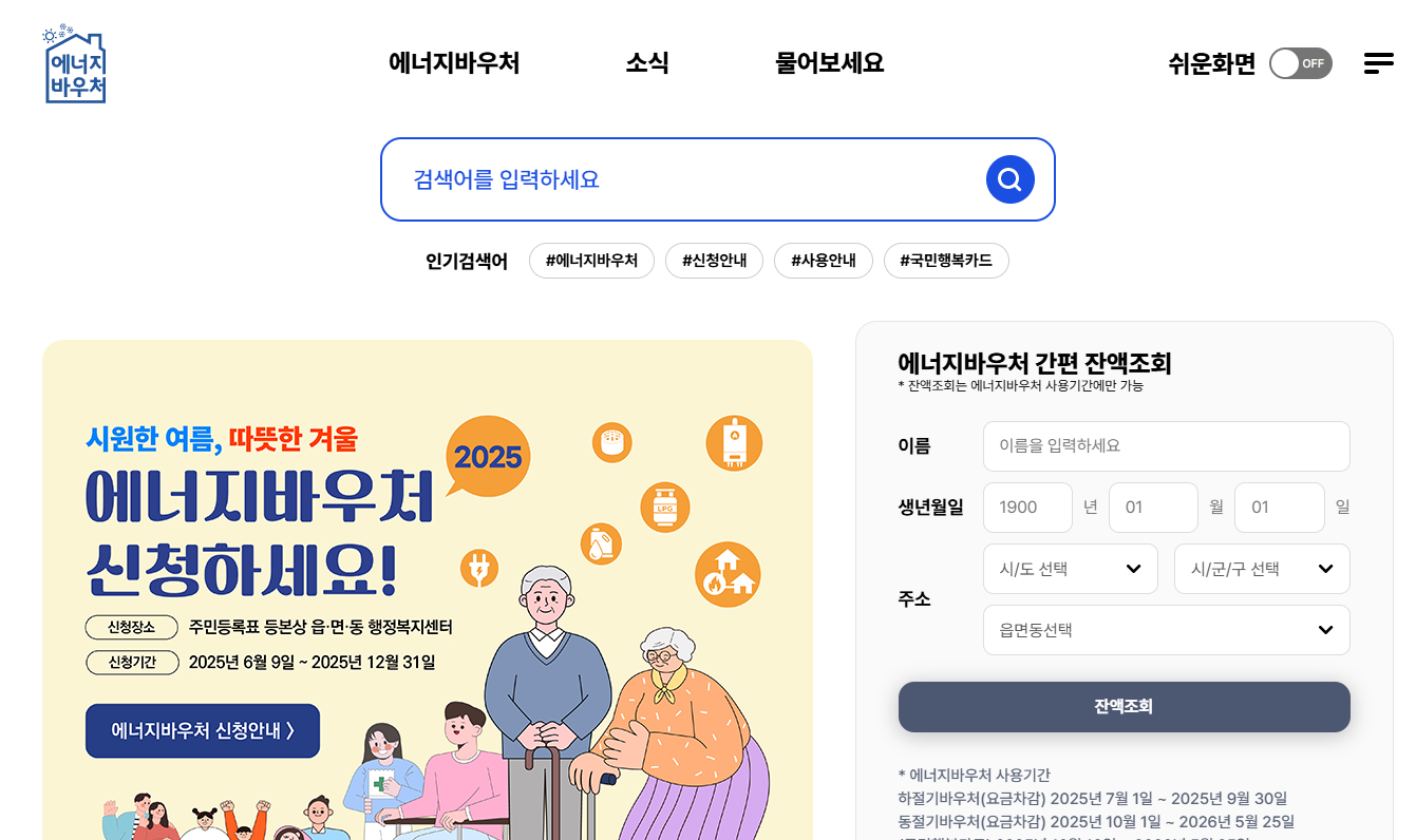 | 에너지바우처 | 6월 9일 ~ 12월 31일 | 승인 후 즉시 사용 |