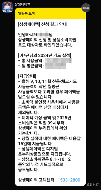 - 카드사 앱 또는 홈페이지에서 상생페이백 신청(https://상생페이백.kr)