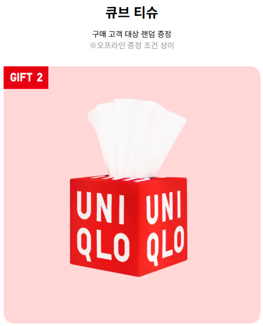 - 유니클로 큐브 티슈 1개 제공