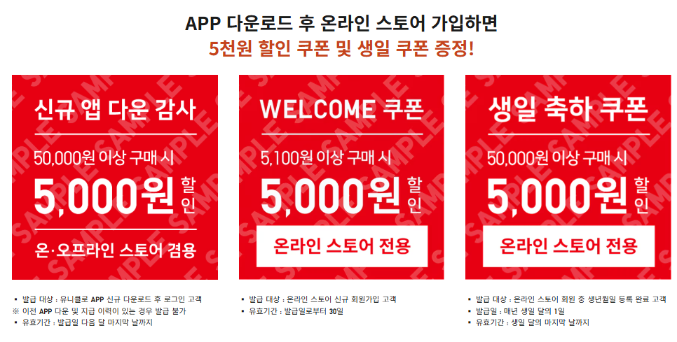 - 유니클로 생일 쿠폰(발급 월 기준) 보유 시 중복 활용 가능