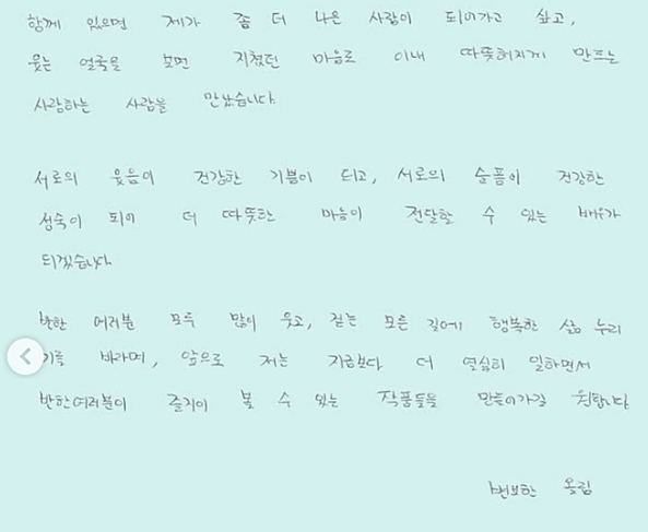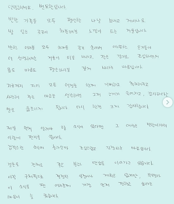 본인 공식 SNS 계정에 직접 업로드하며 팬들에게 가장 먼저 알렸습니다. - 편지의 핵심 내용