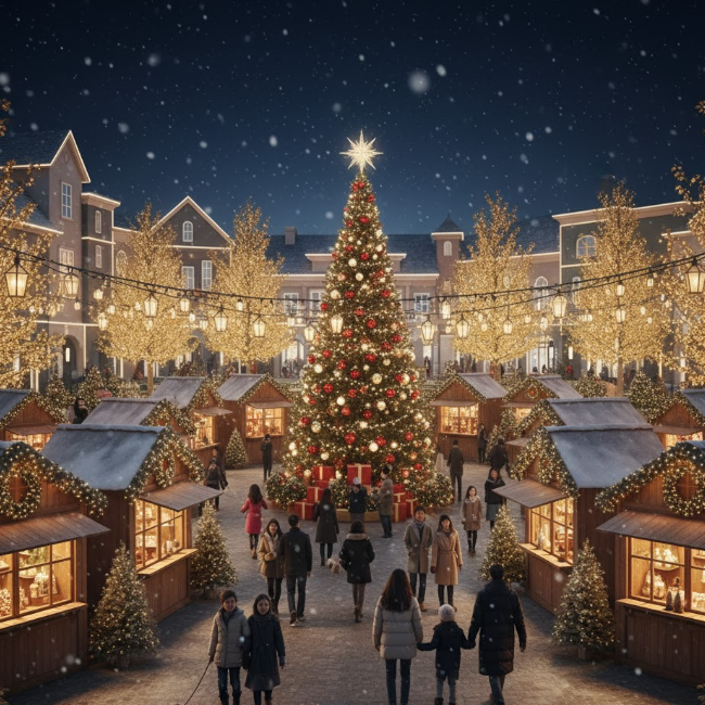✨ 포인트: 14m 대형 트리, 조명 거리, 마켓존