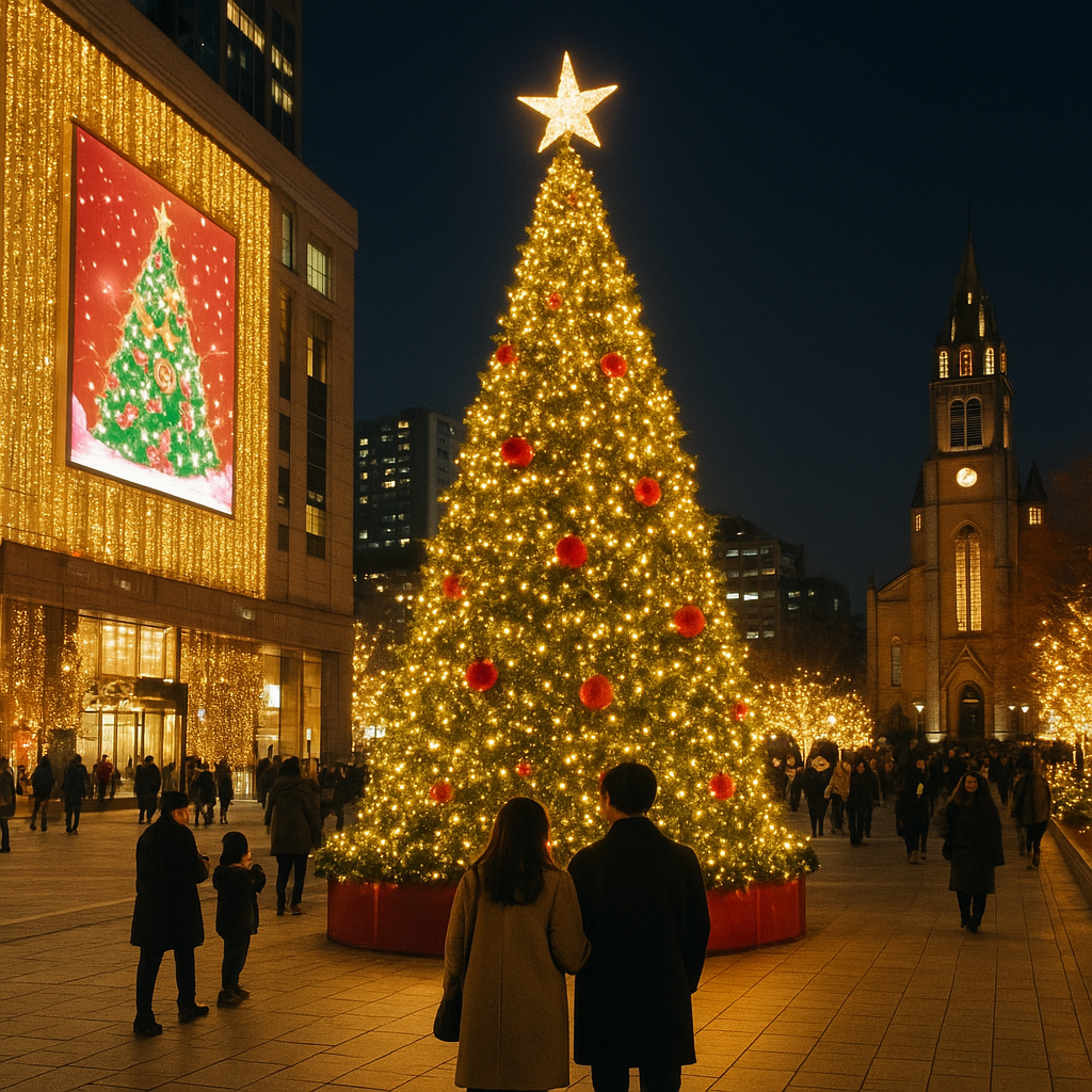 서울의 가장 상징적인 크리스마스 트리 장소로 손꼽히는 서울광장. 대형 트리와 더불어 청계천까지 이어지는 조명길이 조성되어 겨울밤 산책과 사진 촬영에 안성맞춤이에요. 가족·연인 모두가 편하게 즐길 수 있는 도심형 데이트 스팟이에요.