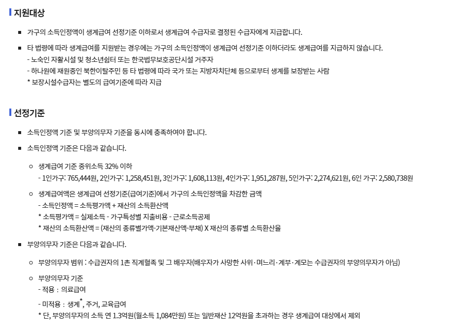 많은 분들이 착각하시는 부분이 있습니다. 내 소득, 세금을 기준으로 자동으로 지급해주겠지? 라는 생각입니다. 하지만 생계급여는 자동 지급이 아닙니다. 조건이 된다 하더라도 가만 있으면 받지 못합니다. 그렇기 때문에 내가 생계급여 대상에 속하는지, 그리고 어떻게 신청이 가능한지를 알아봐야 합니다.